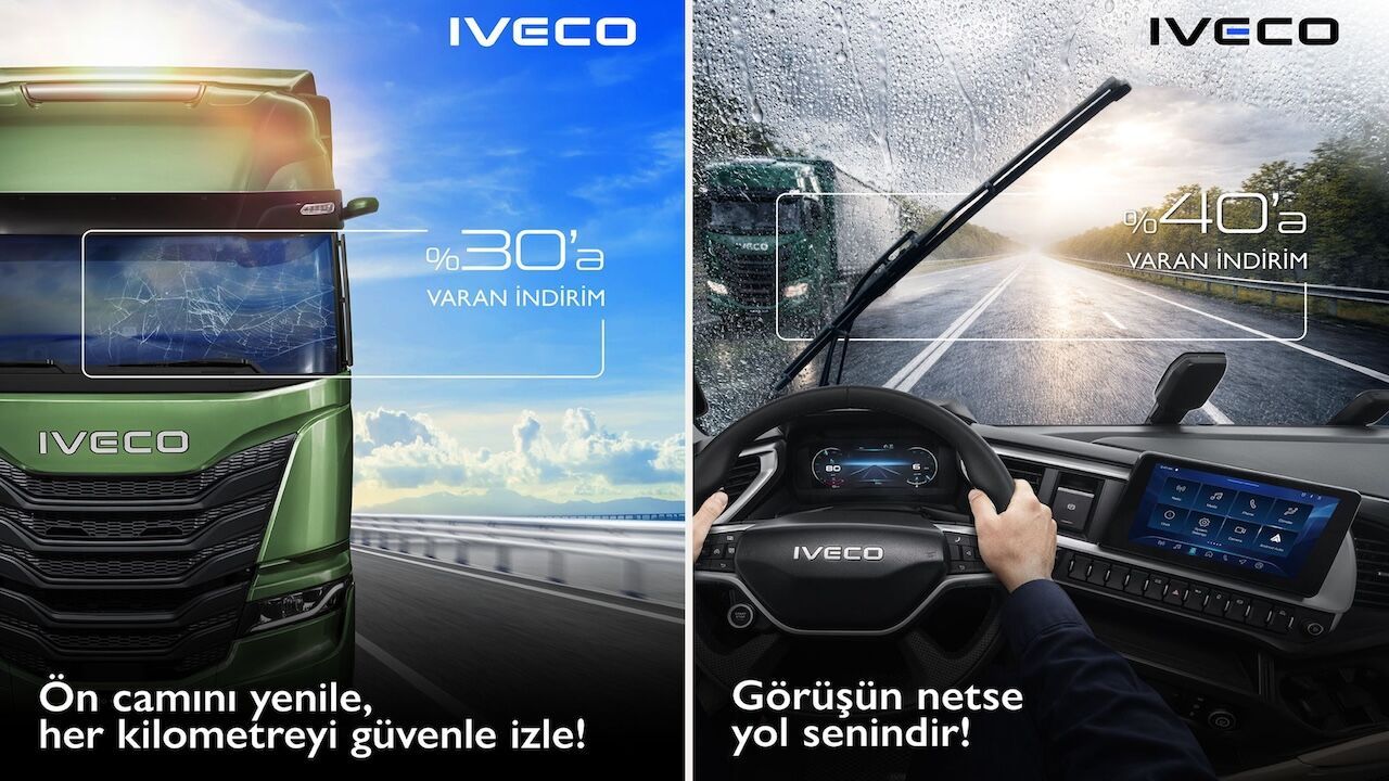 Ön Camınızı Yenileyin, Her Kilometreyi Güvenle Sürün Yine 30 Nisan 2026 tarihine kadar geçerli olan ön cam kampanyası, IVECO araç ön camlarının %30 indirimle değiştirilmesine olanak tanıyor. Bu uygulama, yüksek cam kalitesi ve optimum görüş mesafesi aracılığıyla sürüş güvenliğini artırmayı hedeflemektedir.