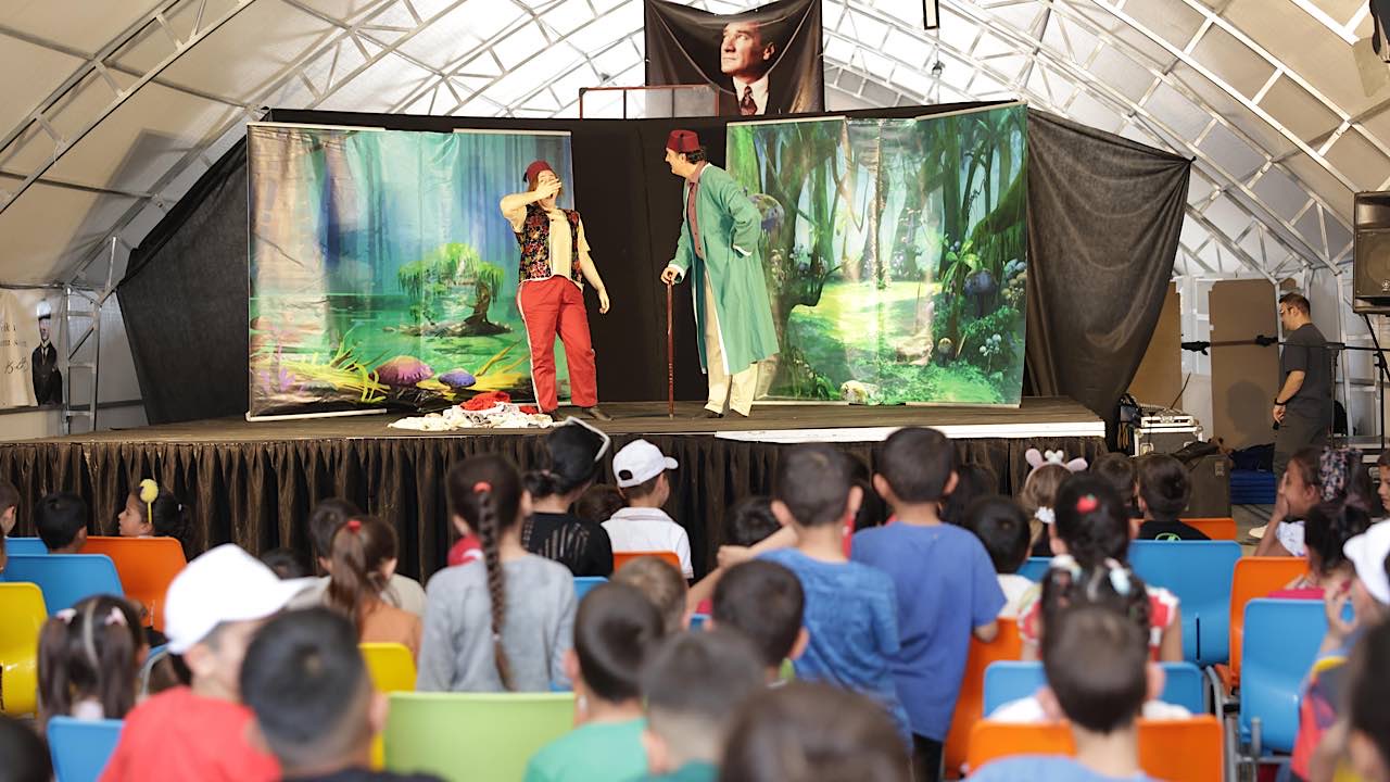 Hatay’ın Antakya ilçesinde yer alan İSO Yaşam Kenti’nde düzenlenen etkinlikte, şirketin gönüllü çalışanlarından oluşan Mercedes-Benz Türk Tiyatro Kulübü, Geleneksel Türk Tiyatrosu’nun sevilen karakterleri İbiş ile Pişekar’ın sahne aldığı tiyatro oyunuyla çocuklara neşe dolu anlar yaşattı.